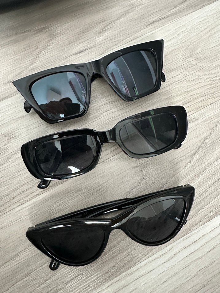 Siyah renkte, gotik esintili klasik tarzda üç kadın güneş gözlüğü seti, zahmetsiz şıklık sunar. ️