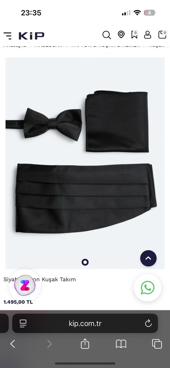 Siyah papyon ve kuşaktan oluşan, düz ve pürüzsüz kumaştan klasik ve gotik tarzlara uygun takım.
