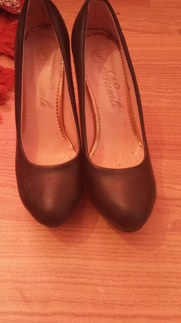 siyah stiletto topuklu ayakkabılar, tokalı tasarımı ve kauçuk malzemesi ile klasik bir görünüme sahiptir. Romantik akşamlar için uygundur. Marka: Yamte.