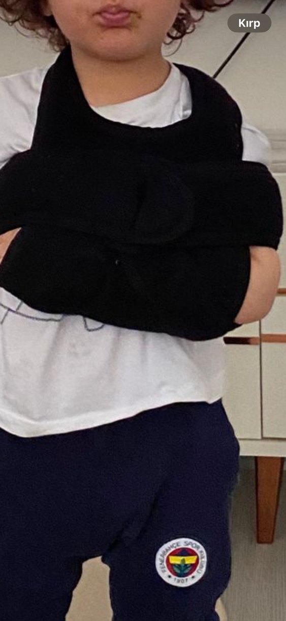 Siyah renkli kol taşıma slingi, kolu kırılmıştı kullandık. Omuz askısı