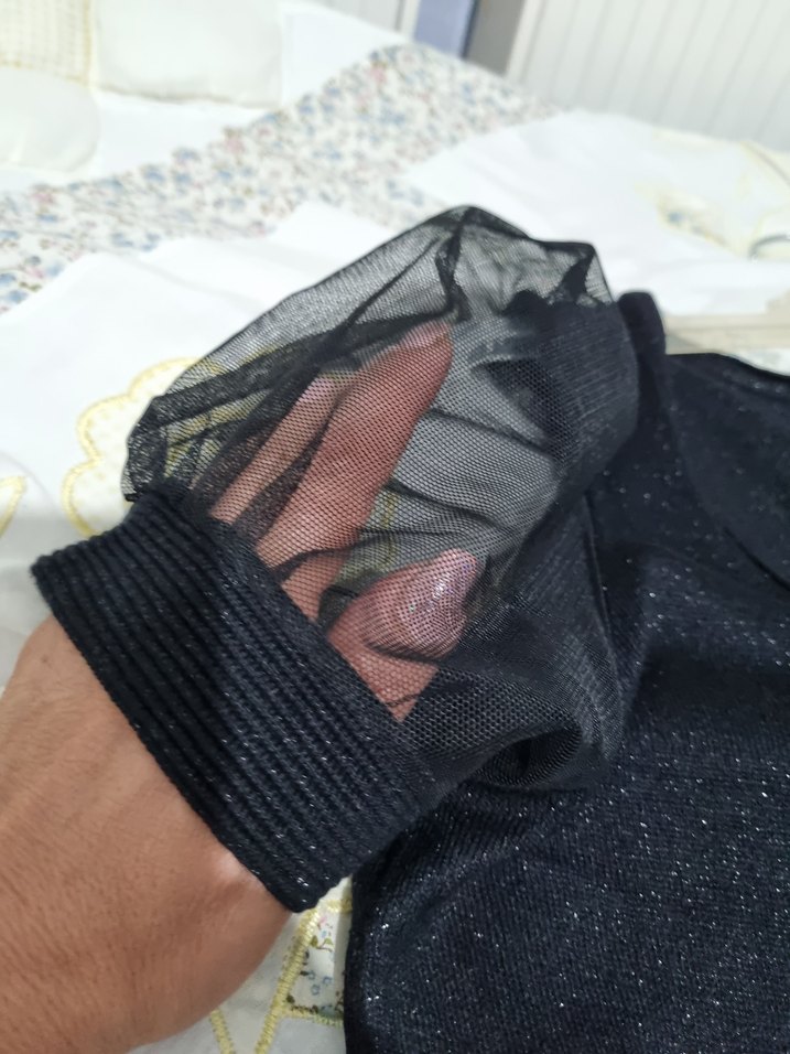 siyah kol tül detay şık bluz