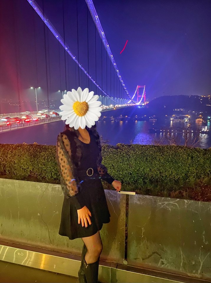 Siyah, puantiyeli tül uzun kollara ve kemerli bele sahip elbise. Temiz defosu yok