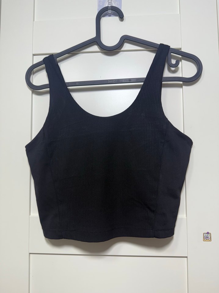 Siyah, kolsuz, yüksek yakalı ve vücuda oturan crop top. Sentetik kumaştan, spor ve günlük şıklık için uygun.