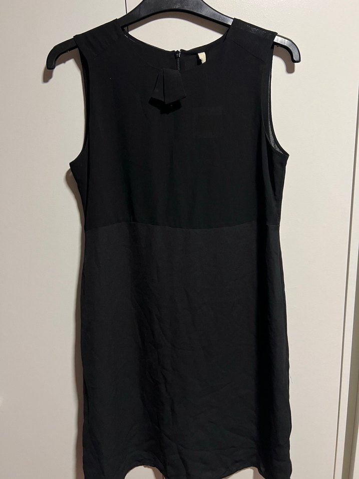 Kolsuz, siyah elbise, yuvarlak yaka ve regular fit ile ofis için zahmetsiz şıklık sunar. Minimalist ve gotik tarzıyla avant-garde moda tutkunlarına uygundur.
