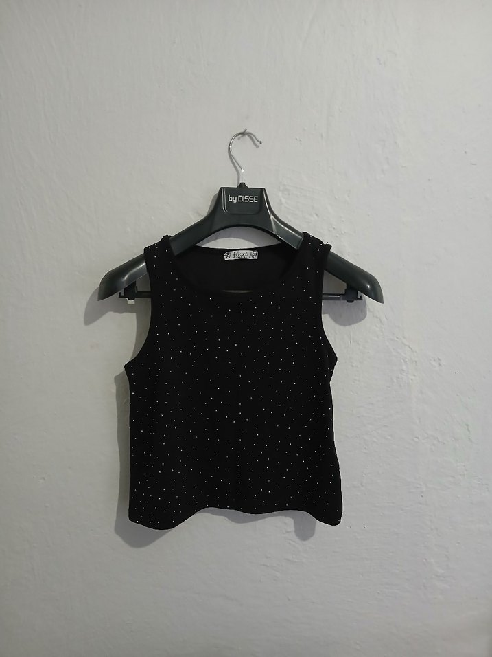 Siyah, kolsuz ışıltılı crop HİÇ GİYİLMEDİ SIFIRDIR ÜRÜN S,M,L BEDEN (SMALL,MEDİUM, LARGE) BEDEN SAHİPLERİNE OLUR