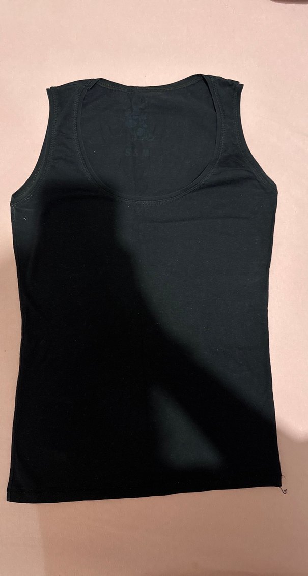 Siyah, kolsuz, dar kesim ve yuvarlak yakalı bu kadın atleti, sentetik kumaştan yapılmıştır. Günlük kullanım için uygundur ve gotik athleisure tarzını yansıtır.