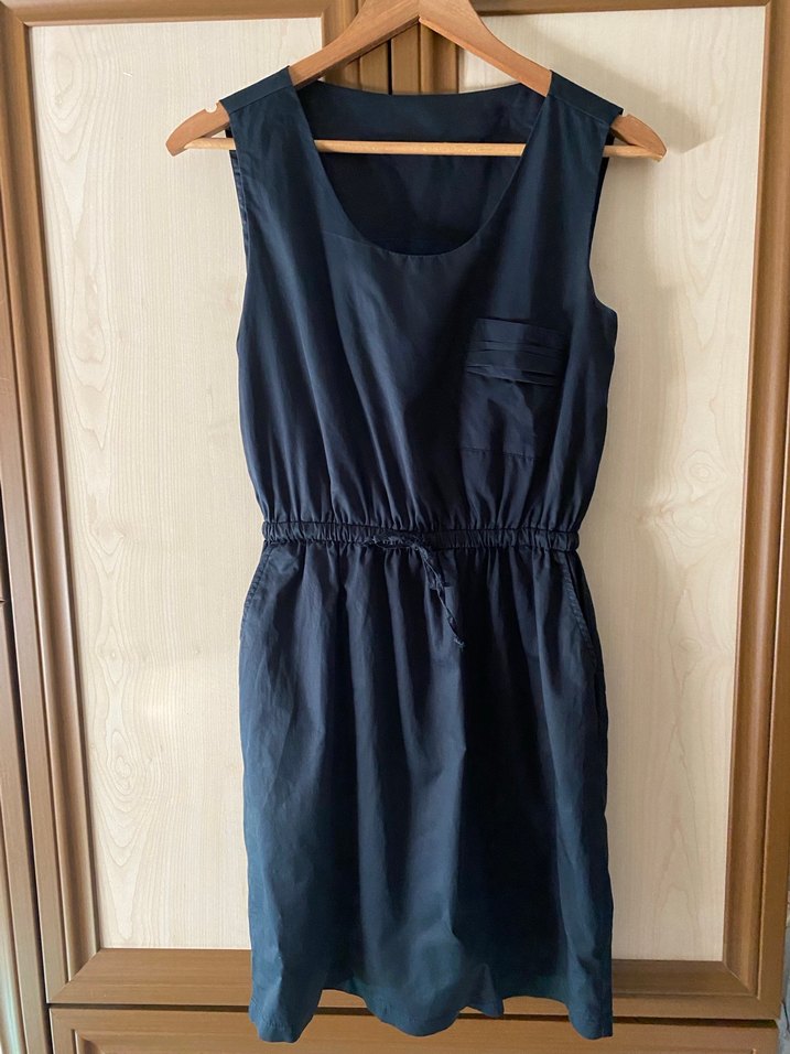 Siyah renkte, kolsuz midi elbise.sade yuvarlak yaka detayına sahip. Günlük kullanıma uygun
