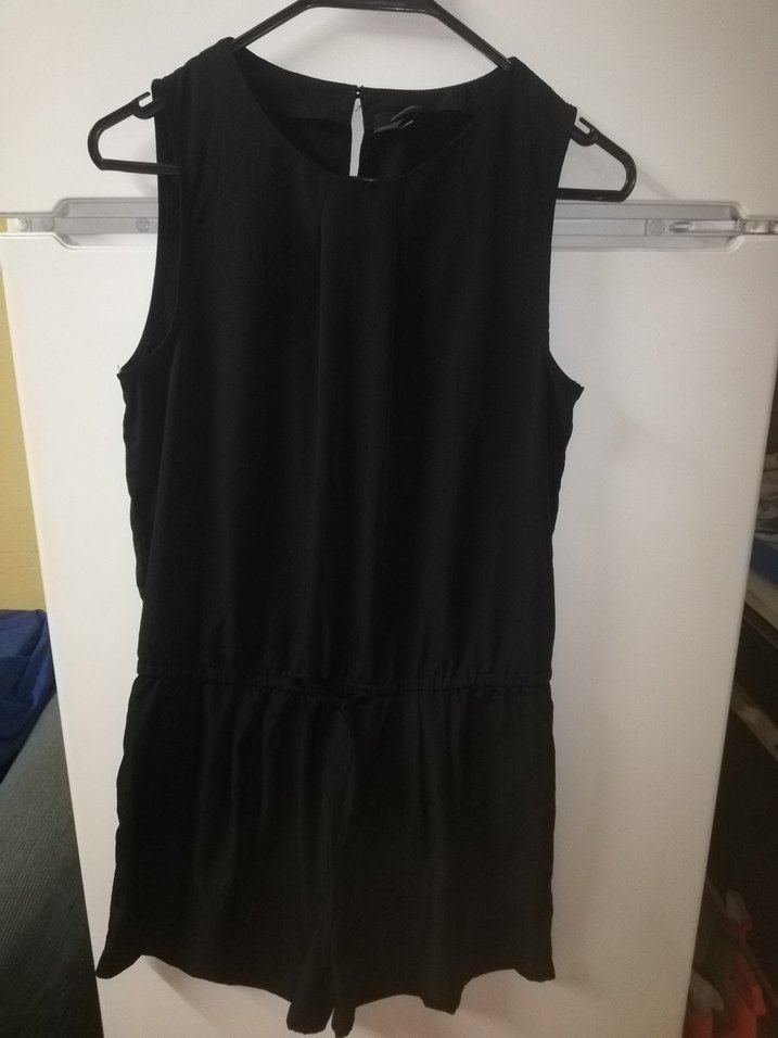 Siyah, kolsuz midi tulum, yüksek yakalı ve vücuda oturan kesimle günlük kullanım için minimalist ve şık bir görünüm sunar. ✨
