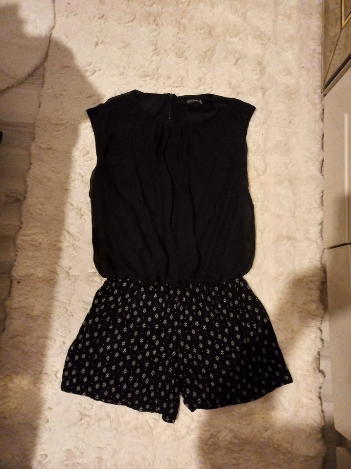 Siyah Kolsuz Mini Kadın Tulum