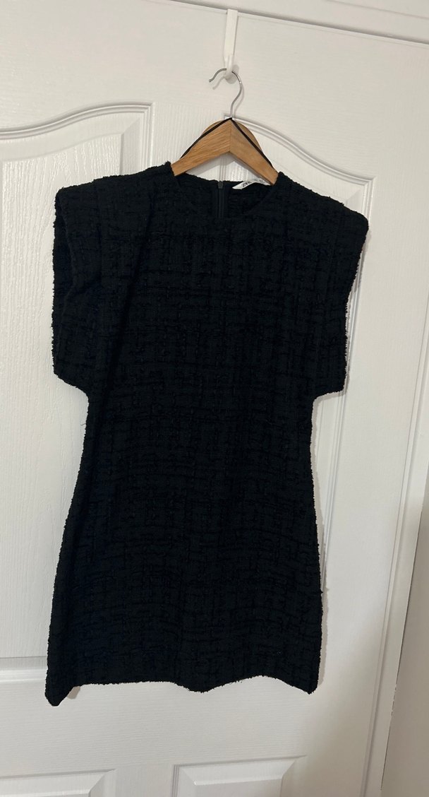 Tüvit Kolsuz, bisiklet yaka ve örgü keten kumaştan yapılmış, fitted kesim siyah midi elbise, modaya uygun ve avant-garde tarz için uygundur.