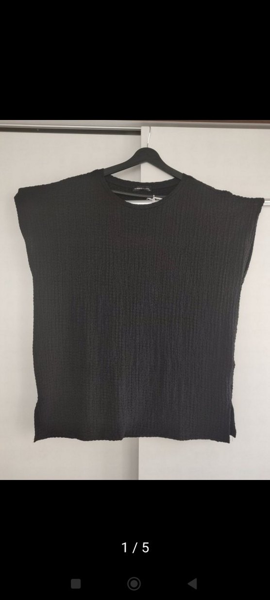 Siyah kolsuz yuvarlak yaka ve bol kesim tişört