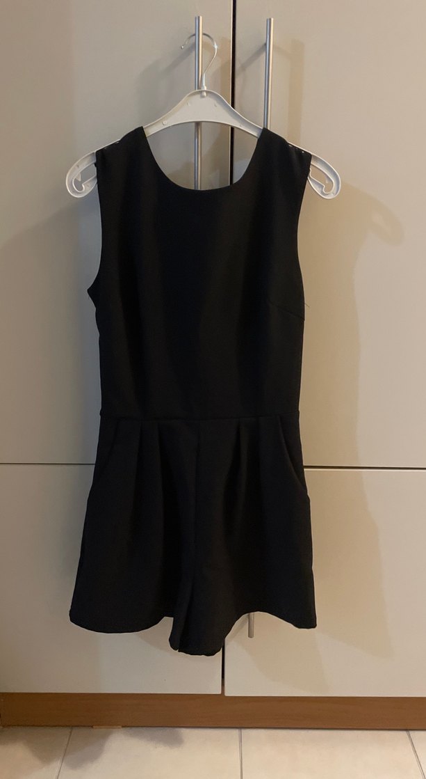siyah kolsuz sort tulum sirti acik dantel detayli hix giyilmedi