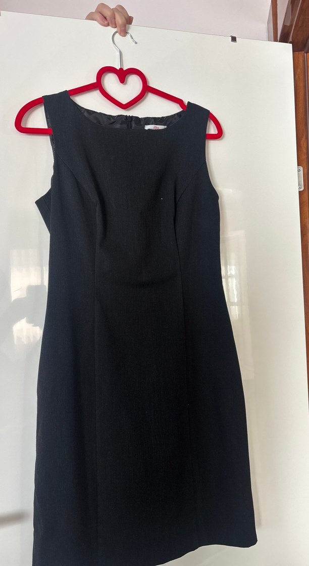 Kolsuz, siyah uzun elbise, klasik ve şık bir görünüm sunar, ofis için uygundur.