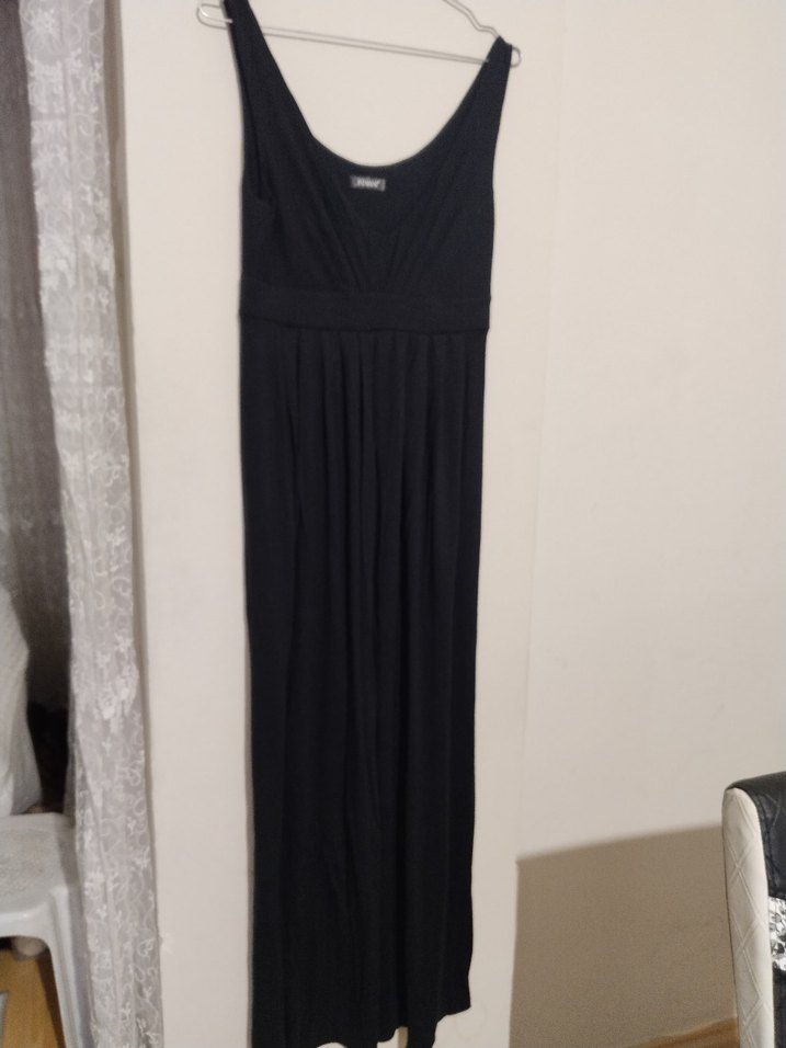 Siyah kolsuz uzun penye elbise, V yakalı ve drapeli tasarımıyla klasik ve minimalist bir şıklık sunar. Ofis için uygundur.