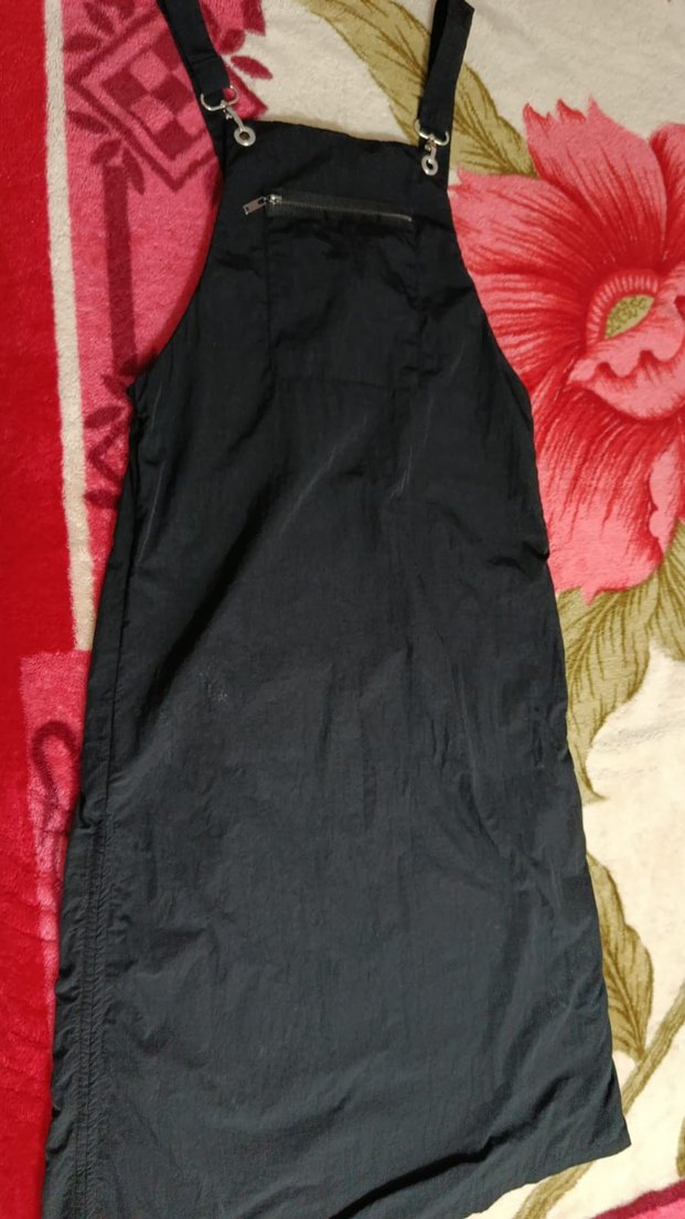 Siyah kolsuz tulum, yüksek yaka ve fermuarlı ön cep detayına sahiptir. Sentetik kumaştan, dar kesim ve dış mekan için uygundur.