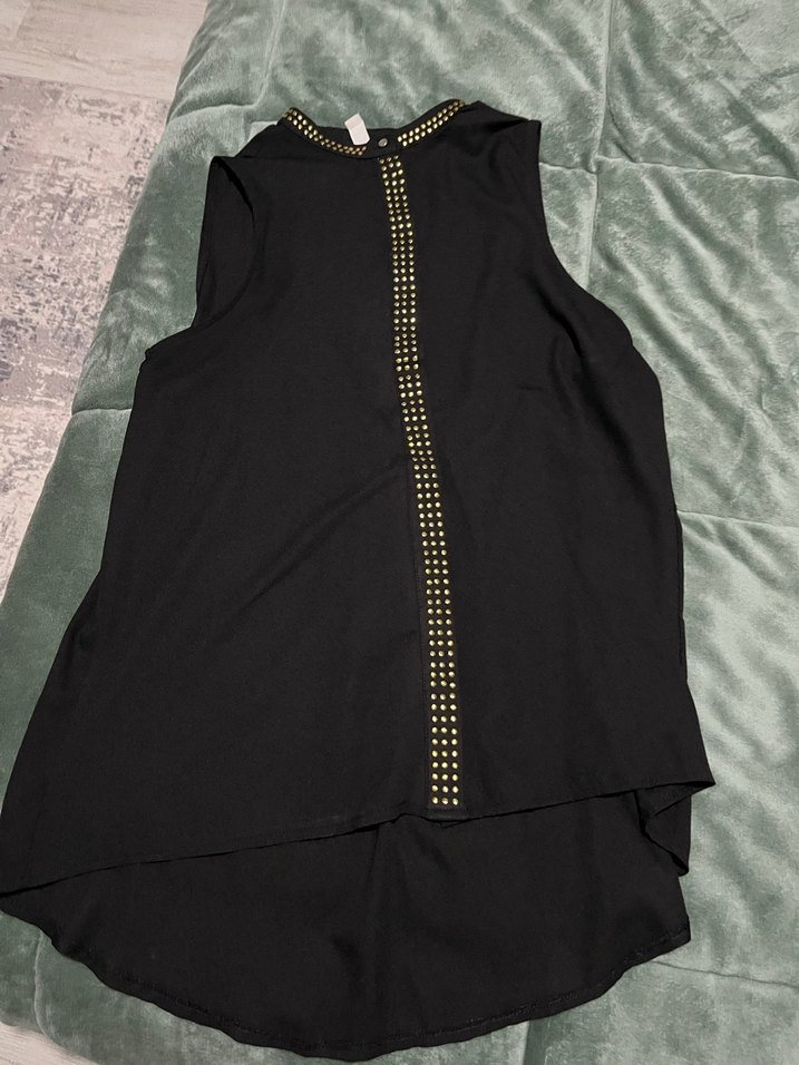 Siyah kolsuz, yüksek yakalı ve kemerli kadın bluzudur. İnce kesimi ve midi uzunluğu vardır. Düz, minimalist gotik tarzda, önünde dikey çivili detay bulunur.