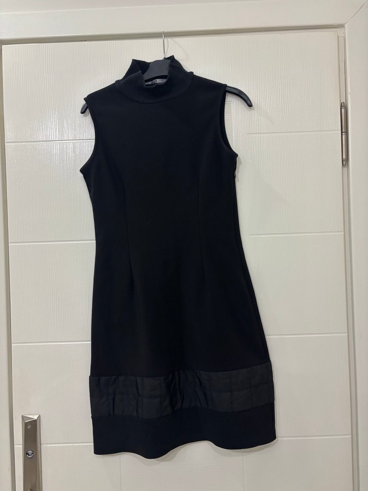 Siyah Kolsuz Yüksek Yakalı Midi Elbise