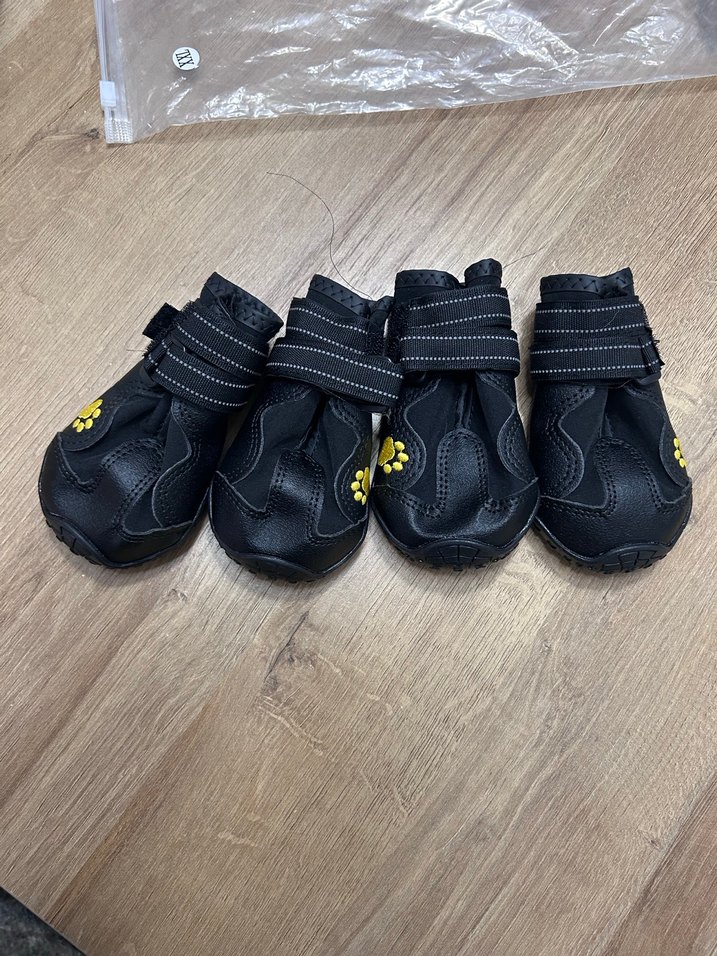beş numara köpek ayakkabısıg cocker Golden gibi 15 20 kg civarındaki köpeklere olur. Kendi köpeğim için almıştım fakat çok büyük geldi uymadığı için satıyorum hiç kullanılmadı tertemiz , aynı önü farklı sitelerde aratabilirsiniz fiyatı 2800 TL’ye satılıyor. Ben kullanamayacağımız için satıyorum. Ayarlanabilir bantlı siyah köpek patik ayakkabısı, sarı pati deseniyle. Dayanıklı taban ve yumuşak kumaş ile patileri korur.