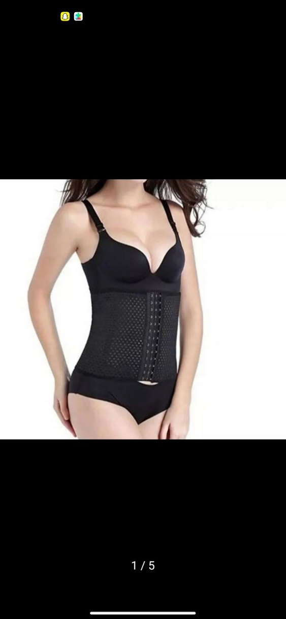 Siyah renkte, kısa ve mini boy lohusa korsesi. Önden çıtçıtlı ve vücuda oturan tasarıma sahip.