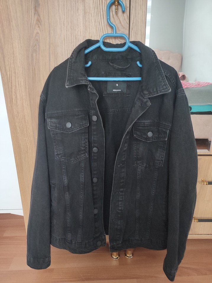s beden sorunsuz marka temsili Siyah renk, düğmeli, uzun kollu ve notched yaka detaylı bol kesim kadın denim ceket. Günlük rahat sokak stili için uygundur.
