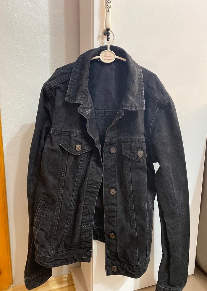 Rengi fotoğraftakinden daha koyu. Fotoğrafta göründüğü gibidir. Maalesef sırt kısmında çamaşır katlama lekeleri vardır zaten görsellerde belli oluyor ama eskitme desenli gibi duruyor. Kilo aldığım icin satıyorum. İndirim için teklif verebilirsiniz