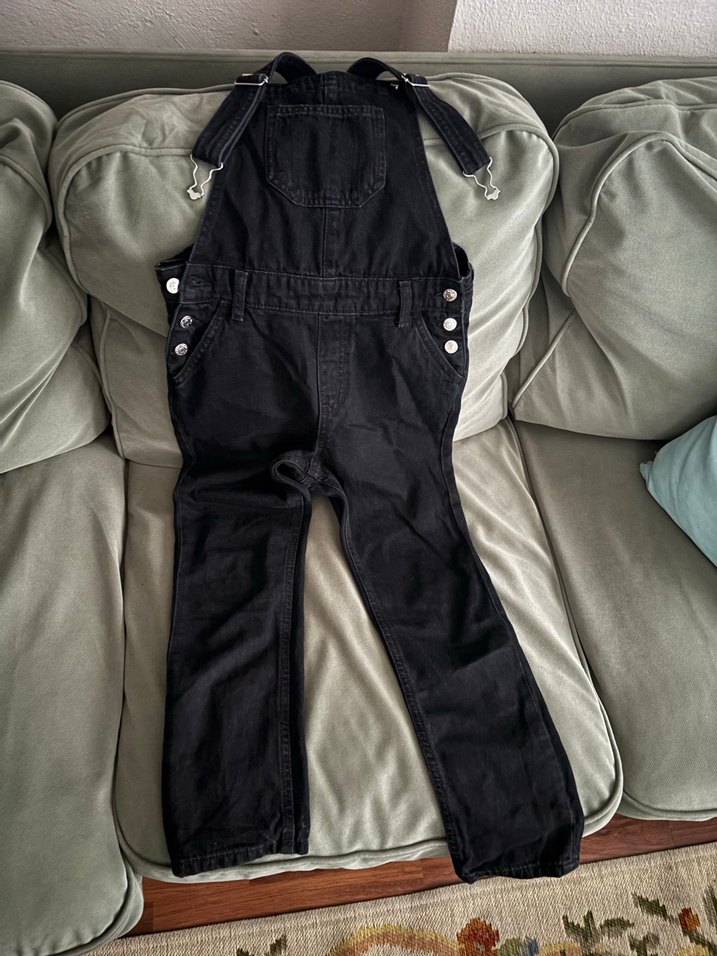 Siyah kot kumaştan,tokalı askılı uzun çocuk tulumu. Günlük rahat sokak stili için uygundur.Az kullanıldı , 9 yaş içindir.
