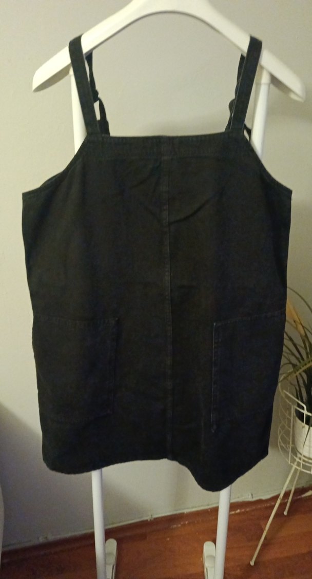 Siyah kot kumaştan, askılı, bol kesim ve yüksek yakalı kısa tulum. Kemer detaylı, günlük kullanıma uygun trendy tarzda.