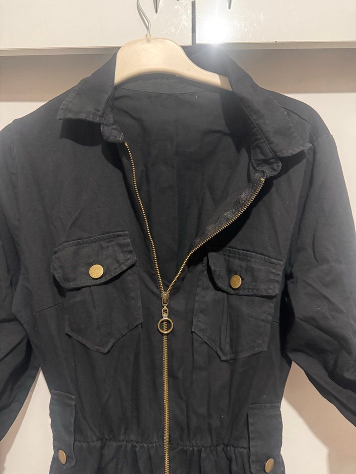 Fermuarlı, yaka detaylı ve uzun kollu siyah kot kadın ceket. İki düğmeli göğüs cebiyle sokak stiline uygun şık bir parça. ✨
