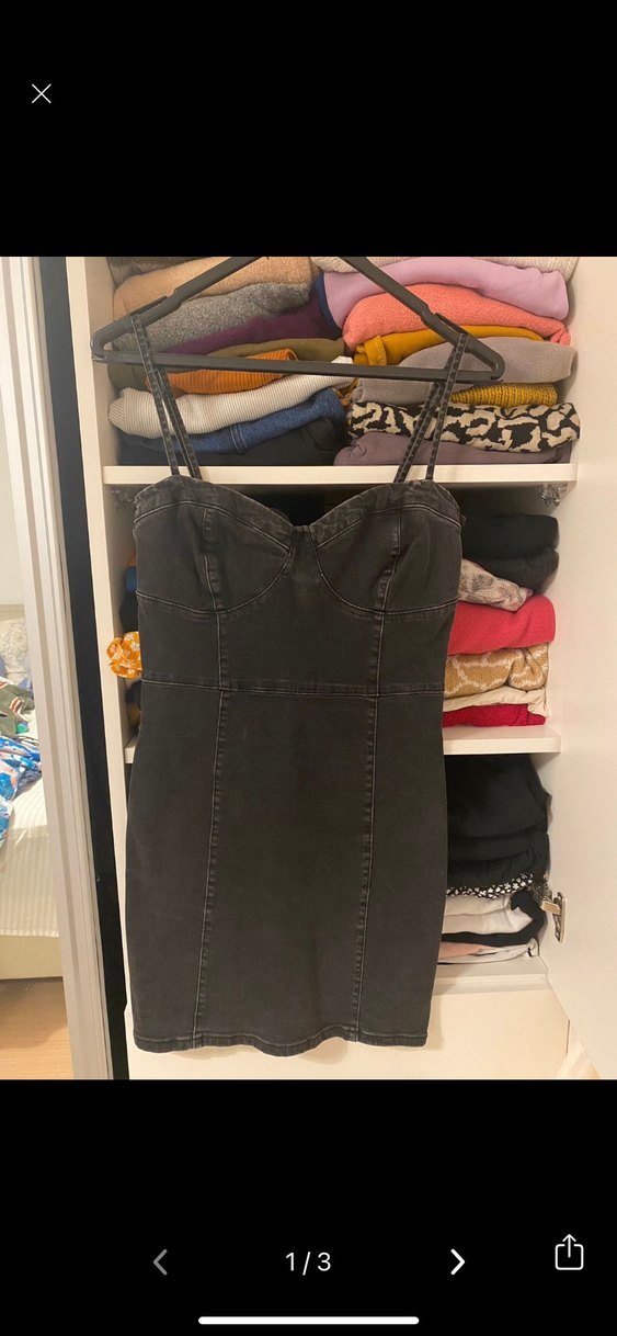 Siyah kot kumaştan, straplez yakalı ve ince askılı, mini boyda, dar kesim elbise. Vintage tarzda, cesur ve sokak modası havasında, romantik akşamlar için uygun. Bir kere giyildi. Hiçbir sıkıntısı yoktur.