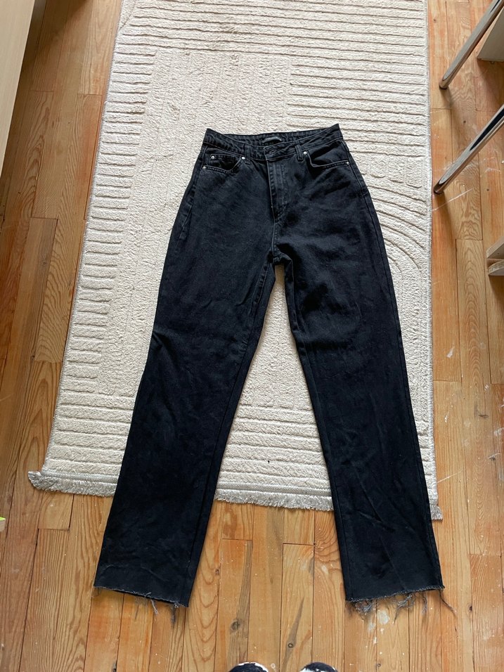 Siyah kot kumaştan, normal boy ve regular fit midi pantolon. Günlük rahat kullanıma uygun, sade ve şık tasarım.