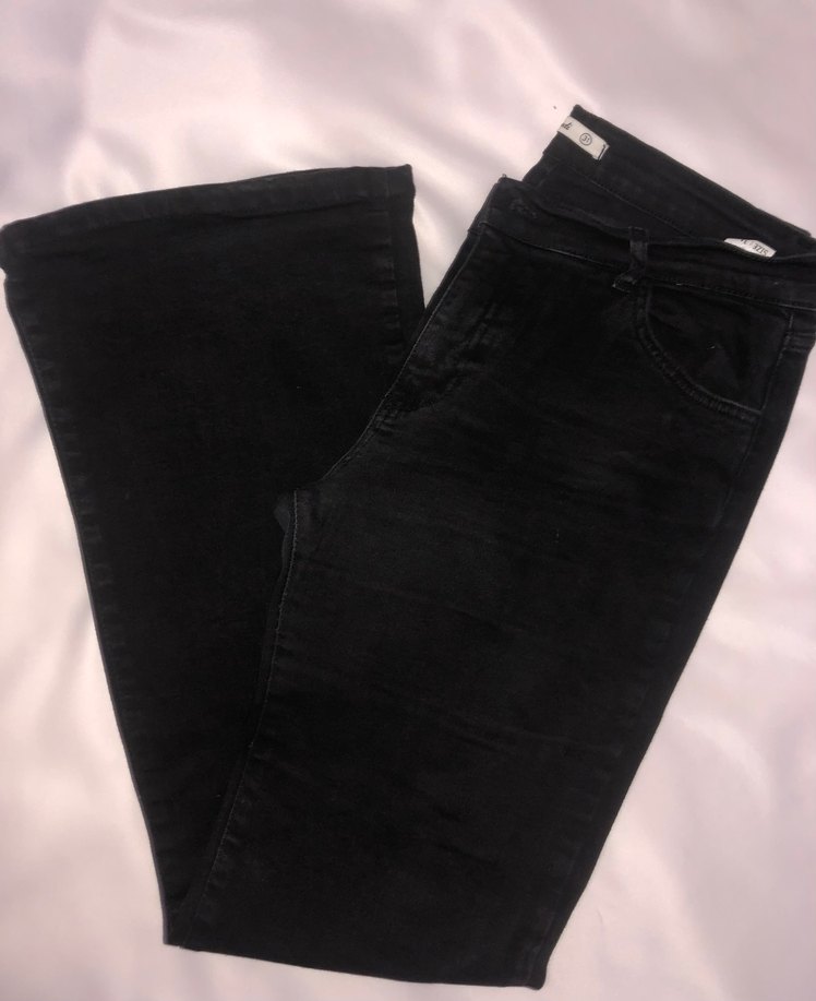 Siyah denim kumaştan yapılan, kot pantolon. Günlük sokak stili için zahmetsiz şıklık sunar. 31 bedendir. Tam kalıptır. Boy 100 cm (1 m)