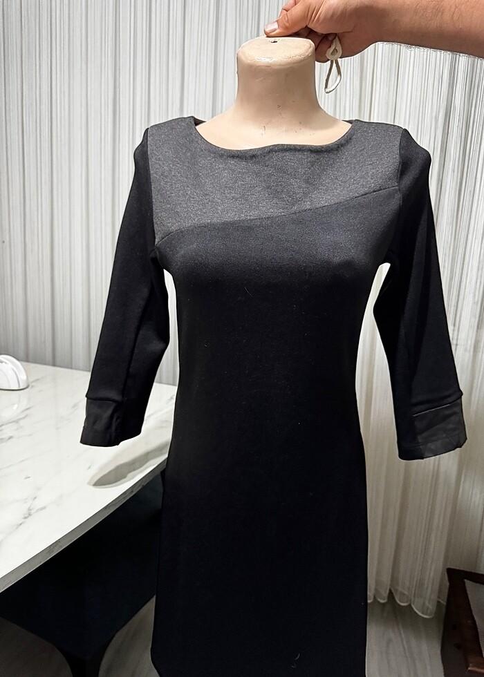 Siyah koyu gri detaylı elbise