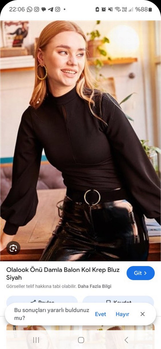 Siyah, krep kumaştan, balon kollu, yüksek yakalı, ofis stiline uygun kesim bluz.