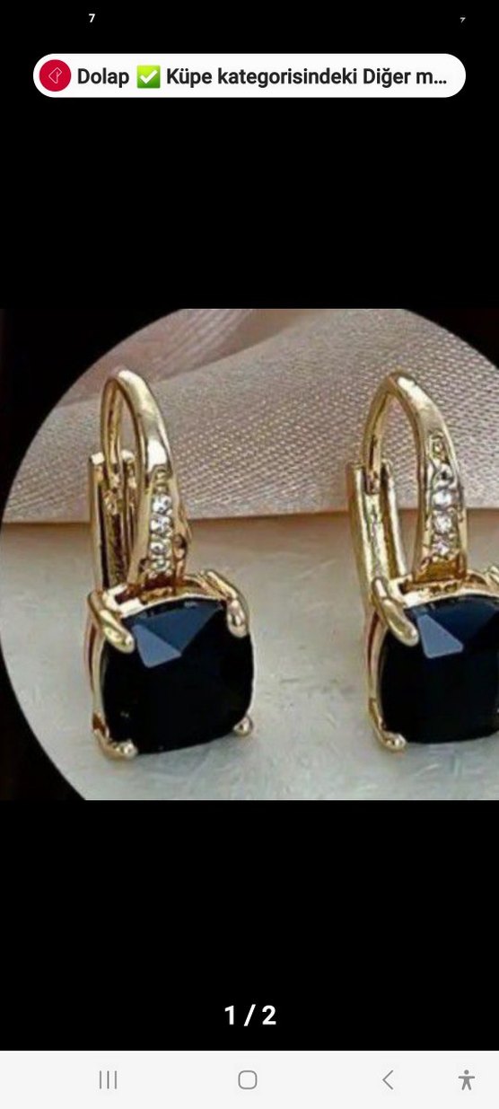 Altın kaplama, kare formunda, takma kısmında minik taşlar olan, parlak siyah, zirkonyum, minik ve çok zarif küpe. İthal olan ürün hiç kullanılmadı, yenidir.