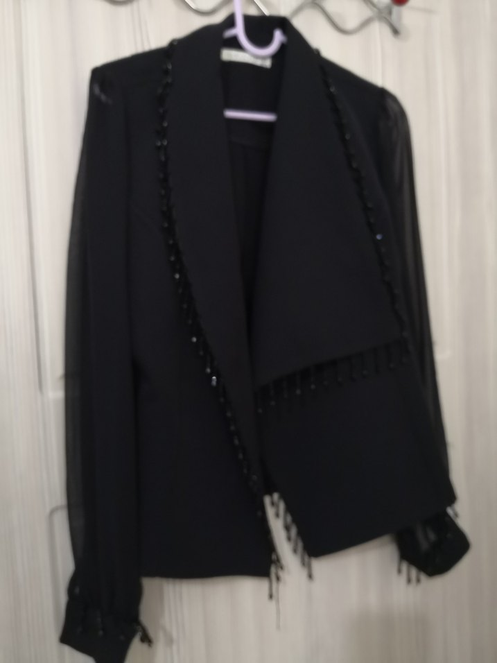 Siyah renkli, kolları tül, Boncuk püsküllü abiye Kruvaze bluz ceket. Hiç kullanılmadı. M Beden.