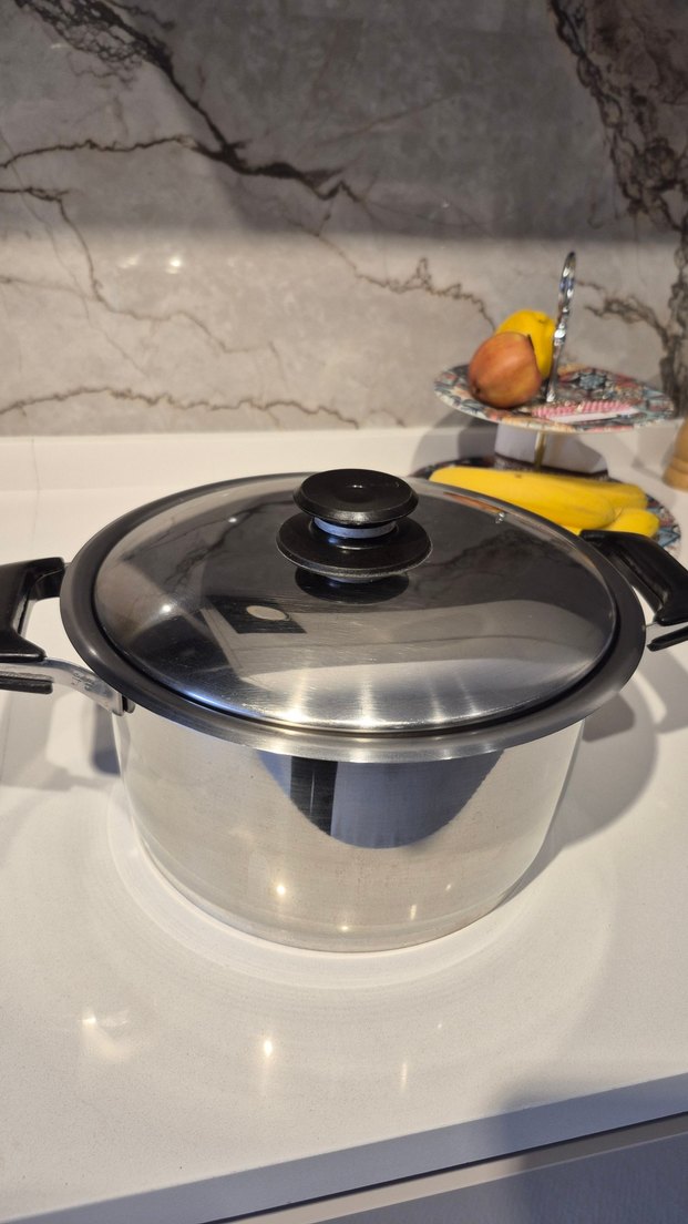 Siyah Kulplu Gri Çelik Tencere büyük boy gerçek çelik 5 lt lik