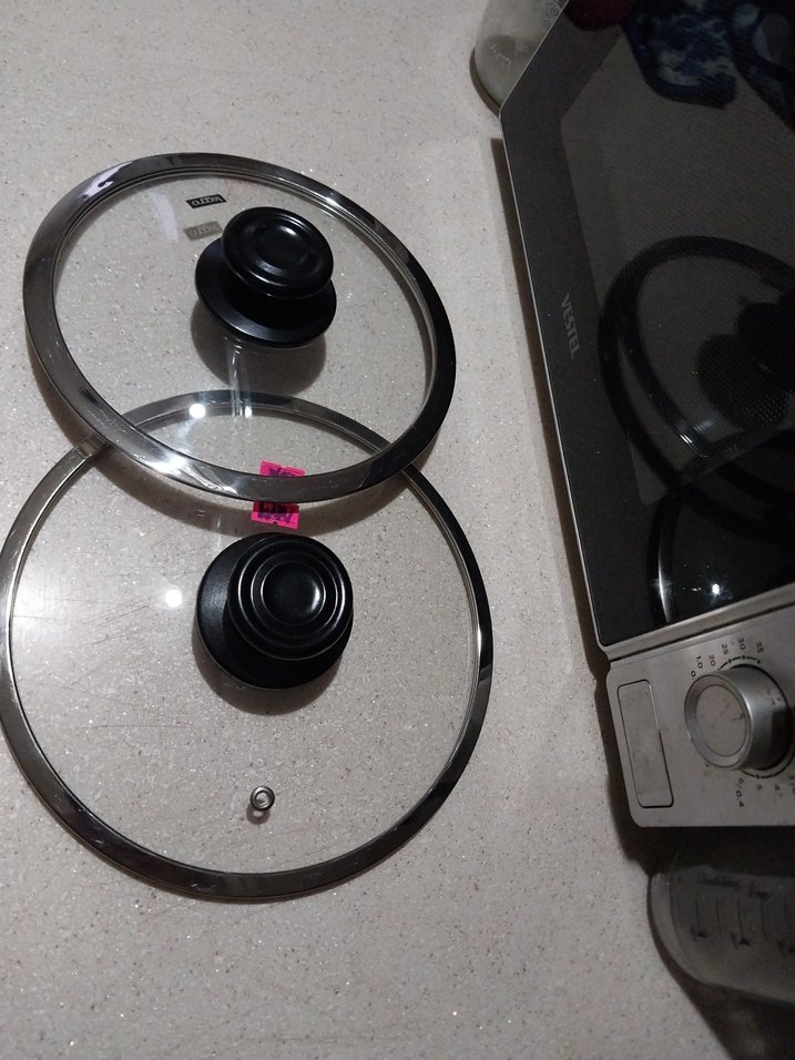 Farklı tencerelere uyum sağlayan siyah kulplu ve gri kenarlı iki adet tencere kapağı. 1 Adet Fiyatıdir. Ölcunuze gore ilan açtiriniz. **Diğer secenekler ve renkler sayfamdadır.