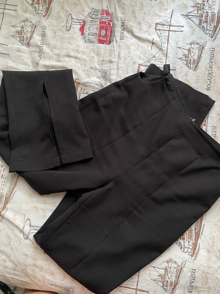 Siyah,boy, beli kemerli, normal kesim, ipeksi kumaştan kadına özel pantolon. İş ortamı için sade ve şık bir tasarım. Koton