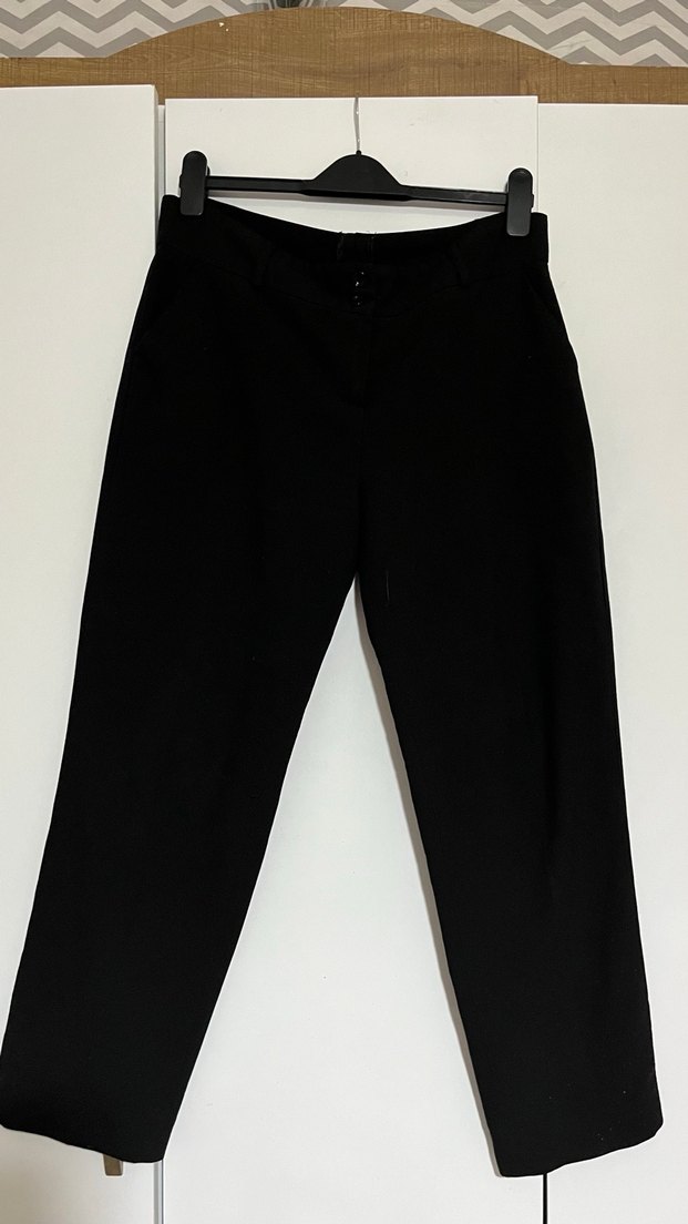 Siyah kumaş kapri Pantolon