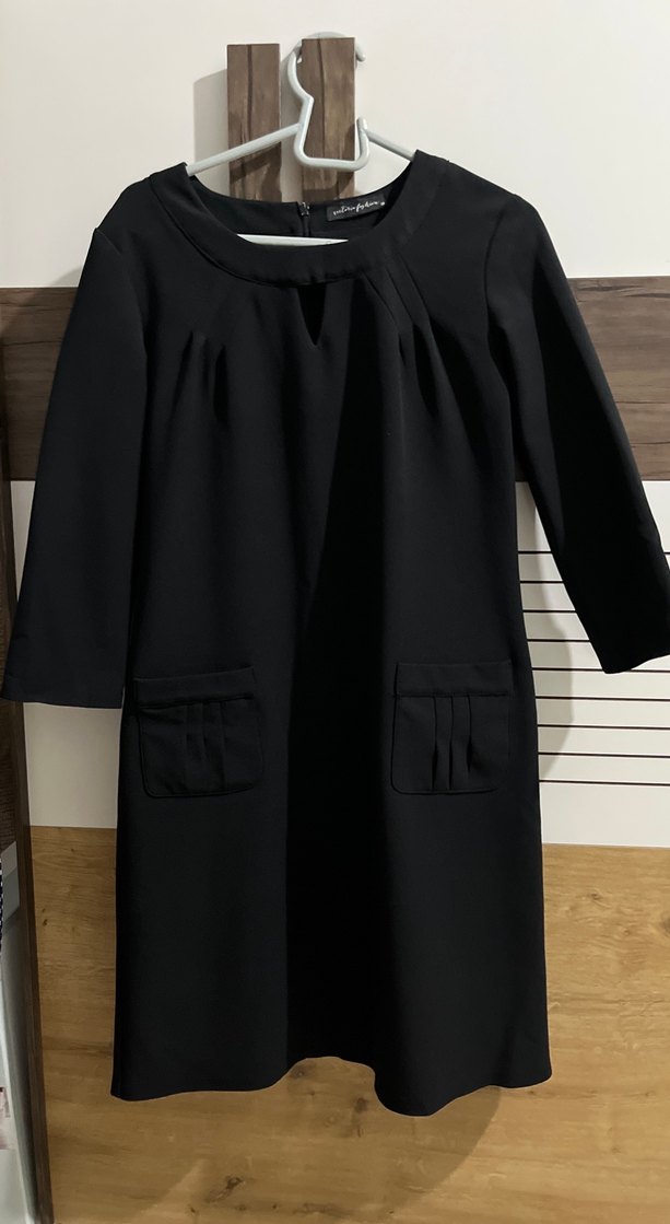 Siyah kumaş elbise.Ofis tarzına uygundur.38 beden.Hafif aşağı doğru bol geliyor.Az kullanılmıştır.Herhangi bir yerinde defo bulunmamaktadır.
