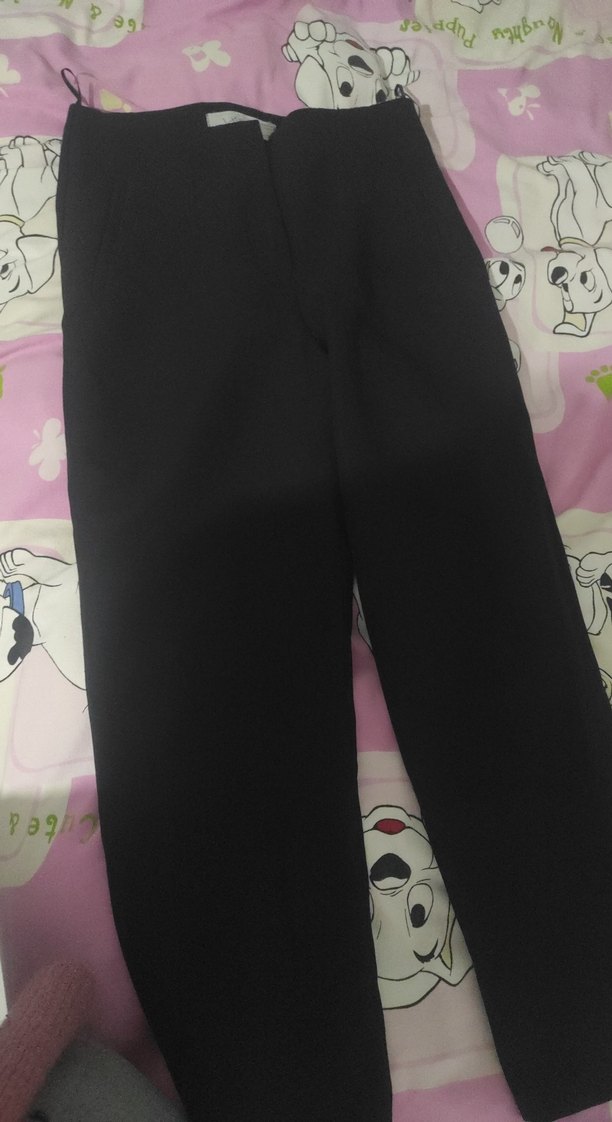 siyah kumaş pantolon cep tasarımlı fakat cep yoktur görünüşü vardır sadece koyu siyah bi rengi vardır kameram kötü olduğu için böyle duruyor normalde siyahtır vayrodan alınmıştır bi kusuru yoktur sadece beden anlamında olmadıği için satıyorum