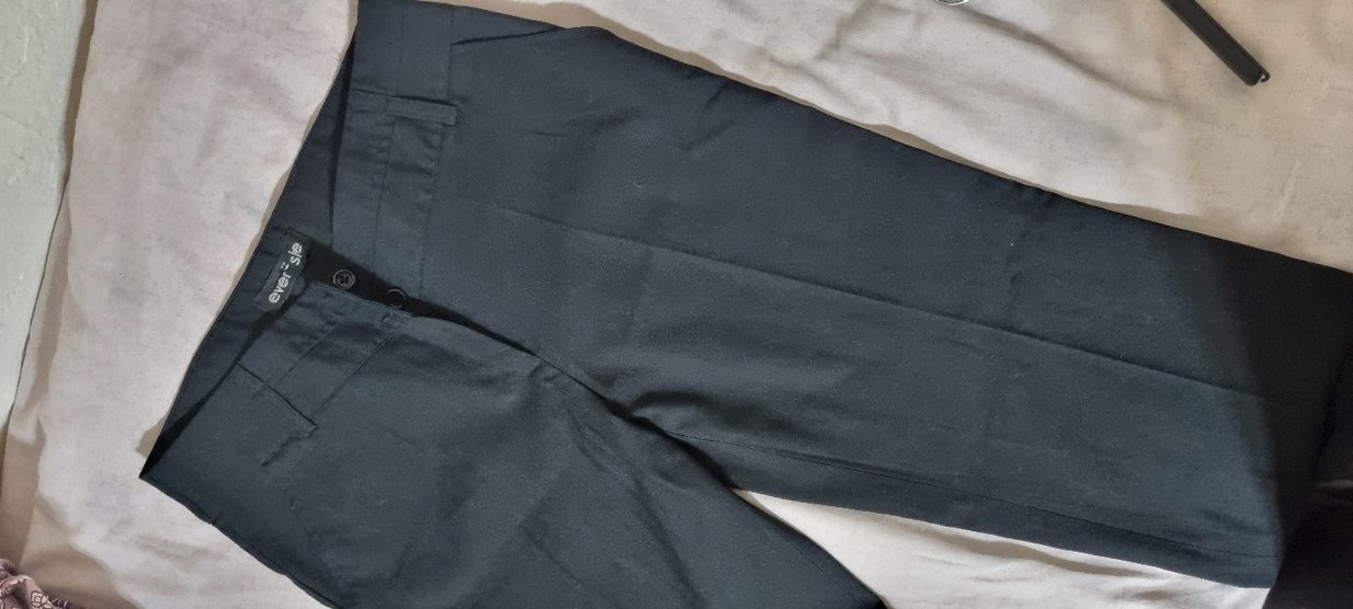 siyah renkte hiç giyilmedi etiketi mevcut değil düz paça yüksek bel 40 beden ama 38 e daha uygun beli 40 cm boyu 100 cm iç bacak 78 cm