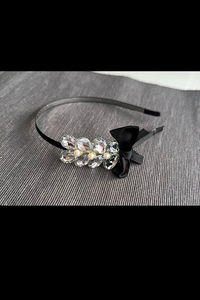 İyi durumda Siyah kurdele ve parlak taşlarla süslenmiş, klasik zarafet ve gotik şıklık sunan taç