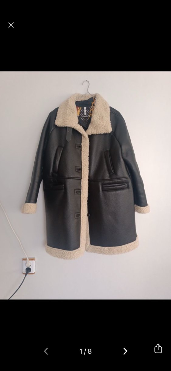 İki üç kez giyildi yeniden farksız aşırı tarz herkes nerden aldığımı sordu önü kapalı halde iki koltuk altı 59 cm boy en tepeden 92cm. Siyah deri ceket, yakada, manşetlerde ve etekte kürk detaylarına sahiptir. Notlu yaka ve midi boy, rahat kesimle günlük şıklık sunar.