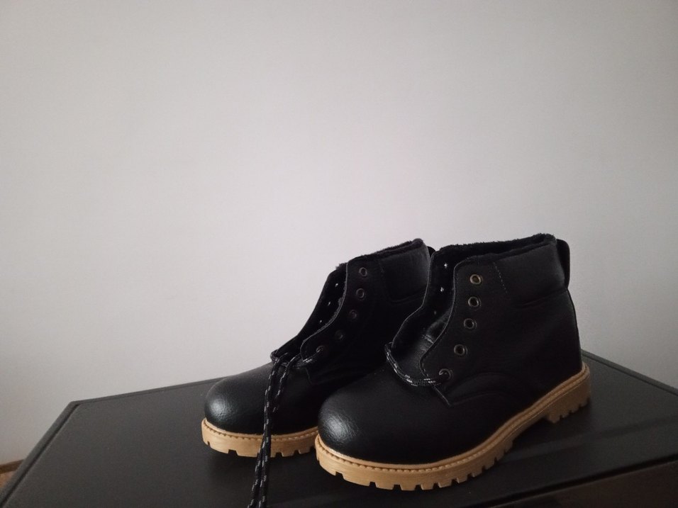 Siyah kürk detaylı erkek bot, rahat ve sıcak tutan açık renk tabanlı sağlam yapı ile.