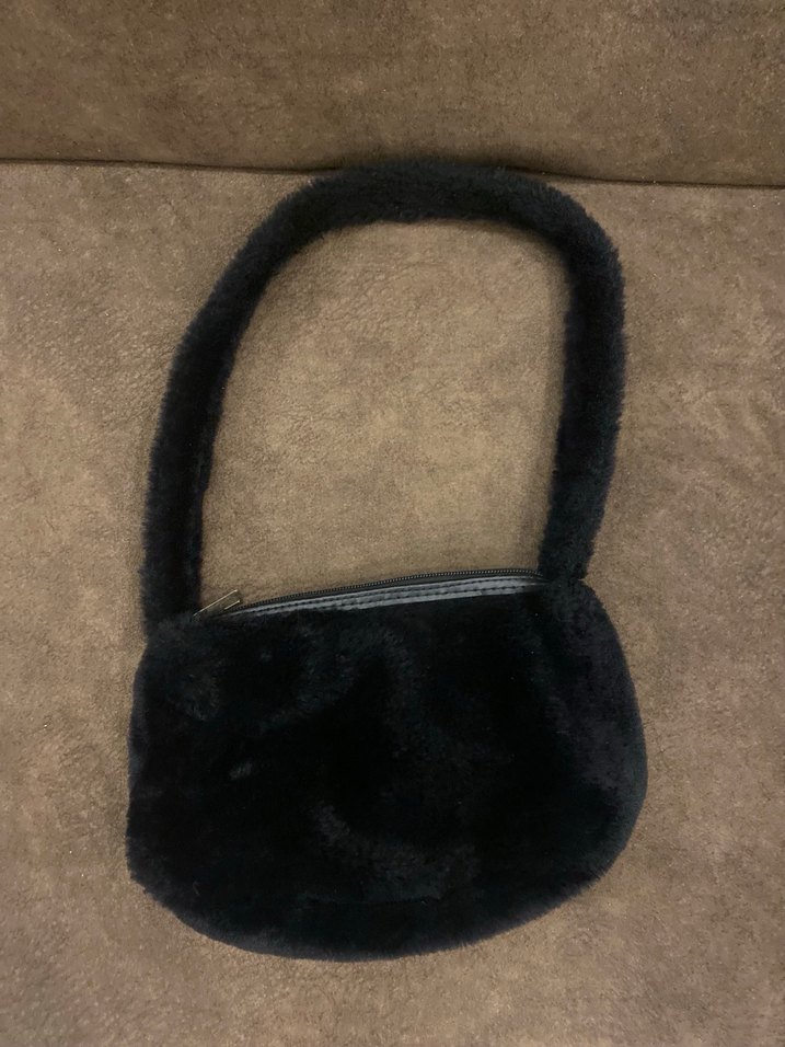 Siyah kürk detaylı ve yumuşak dokulu kadın çantasıdır. Düz ve desen içermeyen tarzıyla günlük kullanıma uygundur.