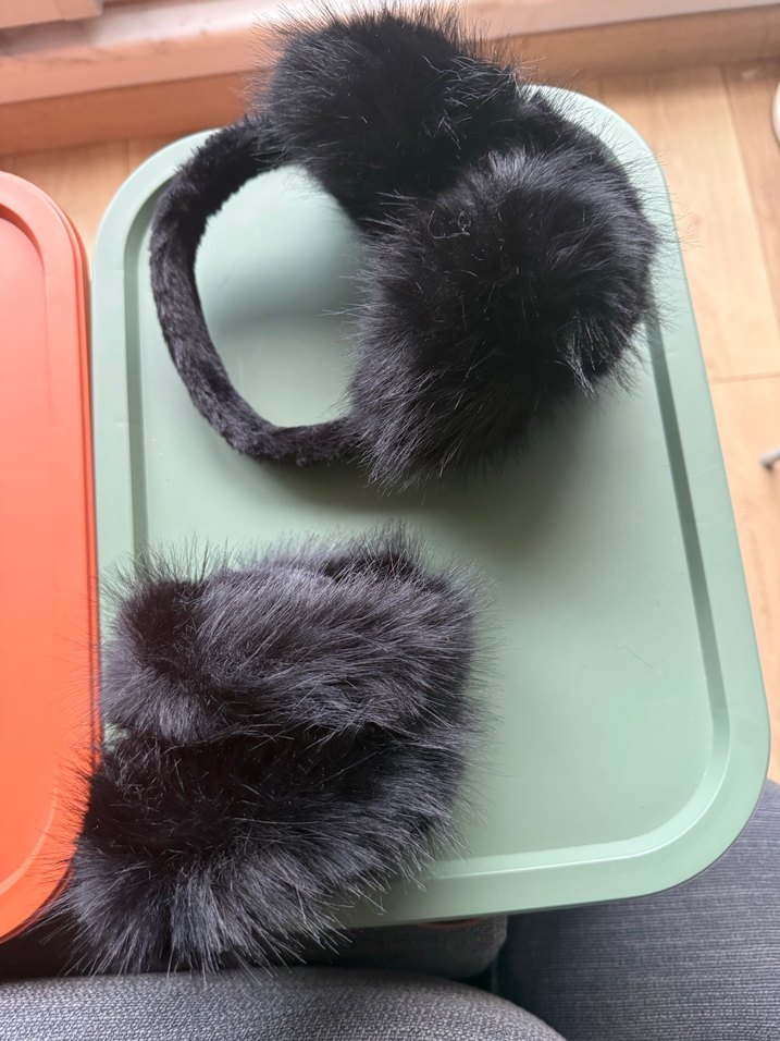 Siyah kürk detaylı, yumuşak ve rahat malzemeden yapılmış kadın aksesuar seti. Günlük kullanım için uygun, gotik tarzda.