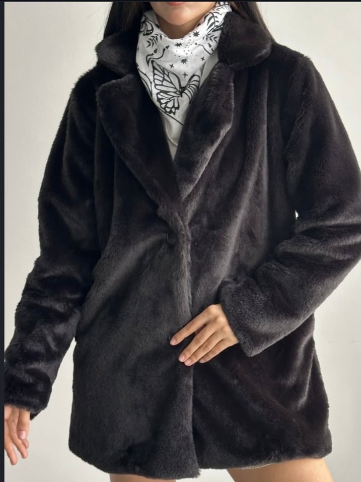 Siyah renkte, kürk detaylı ve uzun kollu midi kaban. Notlu yaka ve bol kesimiyle ofis için uygun, yumuşak dokulu kumaştan yapılmıştır. Sıfır etiketli ürün geri iade yoktur.