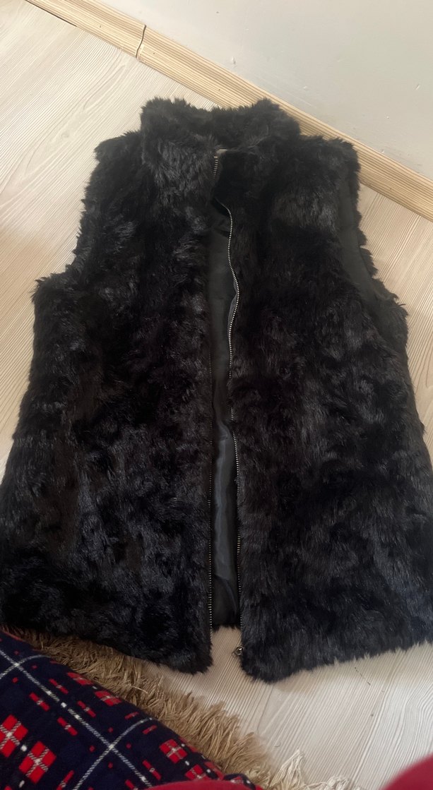 Kürk detaylı, siyah ve kolsuz bu yelek, yüksek yakalı ve vücuda oturan kesimiyle günlük kullanıma uygun rahat ve şık bir görünüme sahiptir.