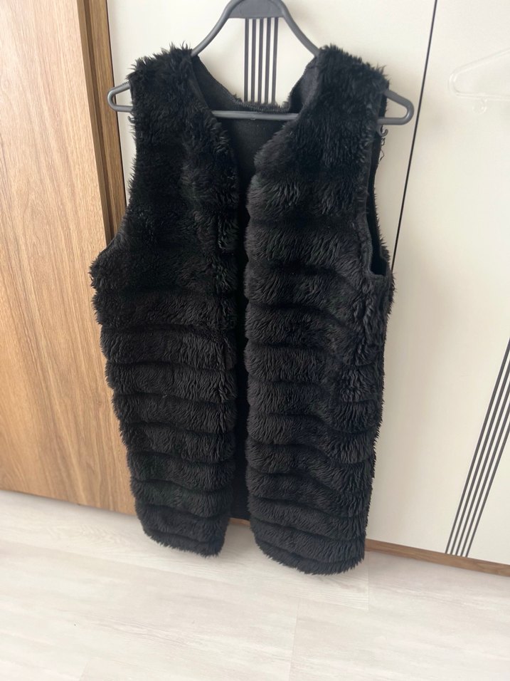 Siyah Kürk Detaylı Kadın Yelek